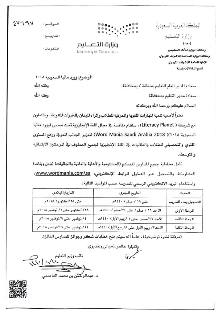 برفقه تعميم معالي نائب الوزير بشأن تطبيق #وورد_مانيا_السعودية